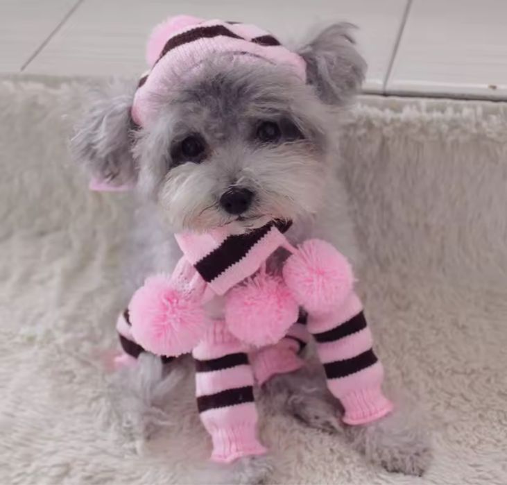 Set de iarna (caciula fular jambiere) pentru catei pisici XXS