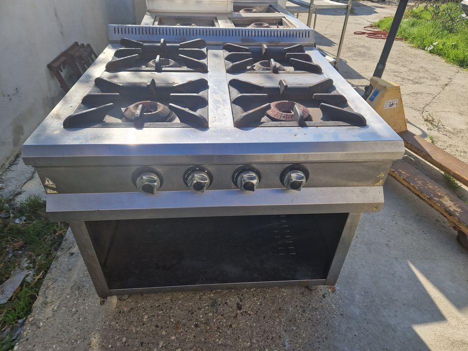 Mașina gătit cu 4 ochiuri, din inox, cu banc, de putere