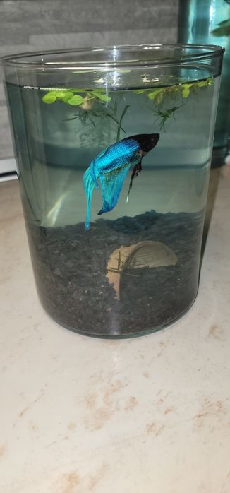Betta mascul albastru + acvariu complet + plante plutitoare – pachet