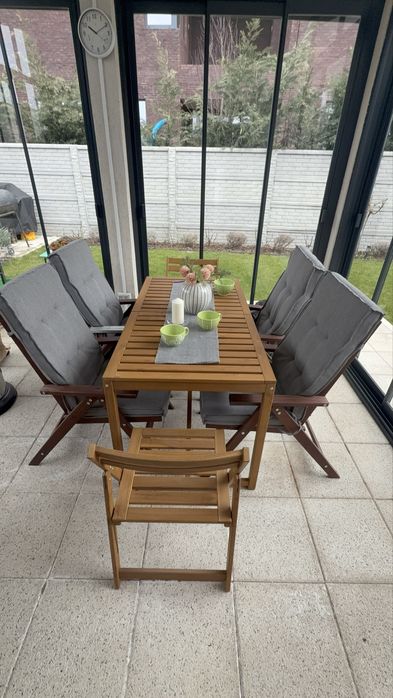 Set masa extensibila si scaune lemn exterior