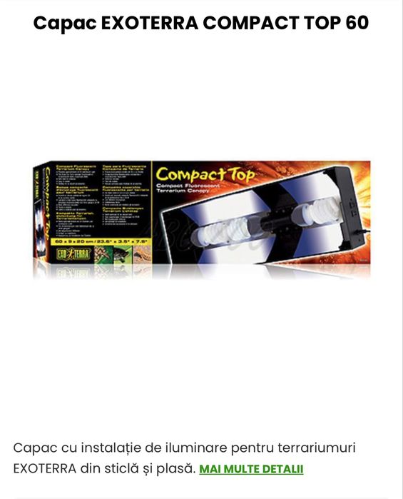 Capac Exoterra Compact Top 60 / capac acvariu reptile UVB cu dulie