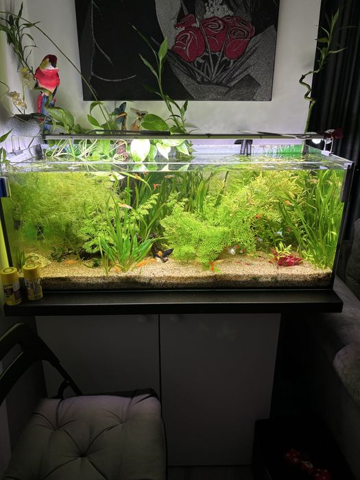 Acvariu cu stand , 60 litrii , cu pești guppy