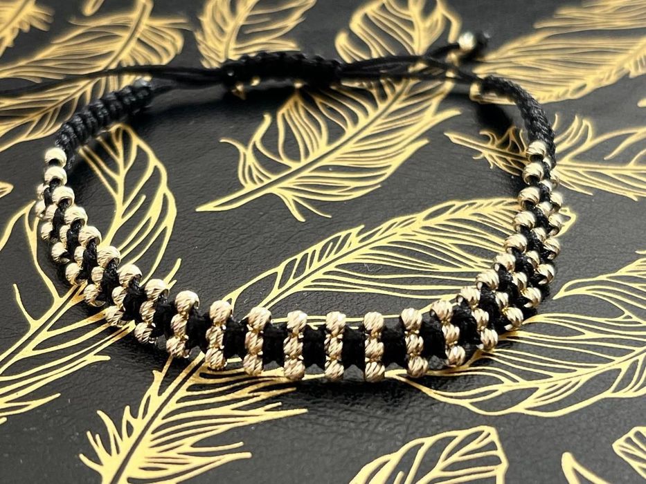 Brățară din șnur cu biluțe de aur 14k