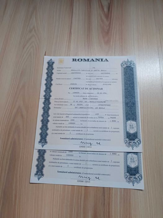 Intra pe OLX.ro si vezi toate anunturile din categoria de certificat de actionar in Braila ⭐ Cumpara certificat de actionar second hand sau noi!