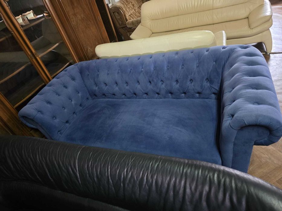 canapea albastra în Mobila