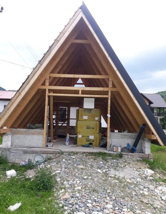 Construim case modulare moderne pe structura metalica,  cabane tip A