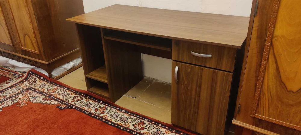 Birou de calculator cu rafturi, sertare si tava tastatura