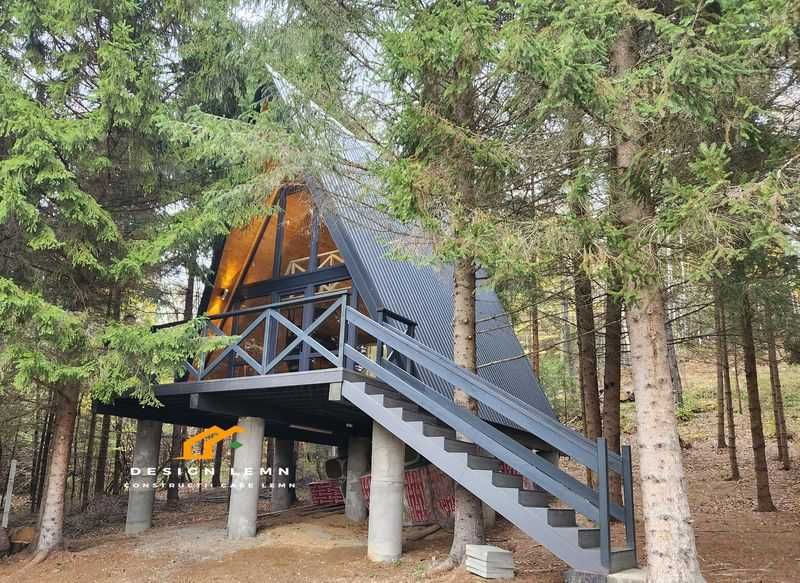 Casa lemn, tip A frame, pret producator, Andrei - 58,38mp + terasa