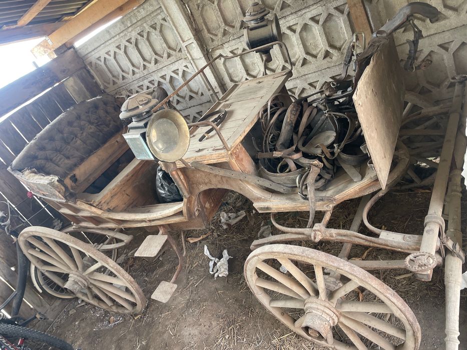 Șareta antică cu hamuri si restu