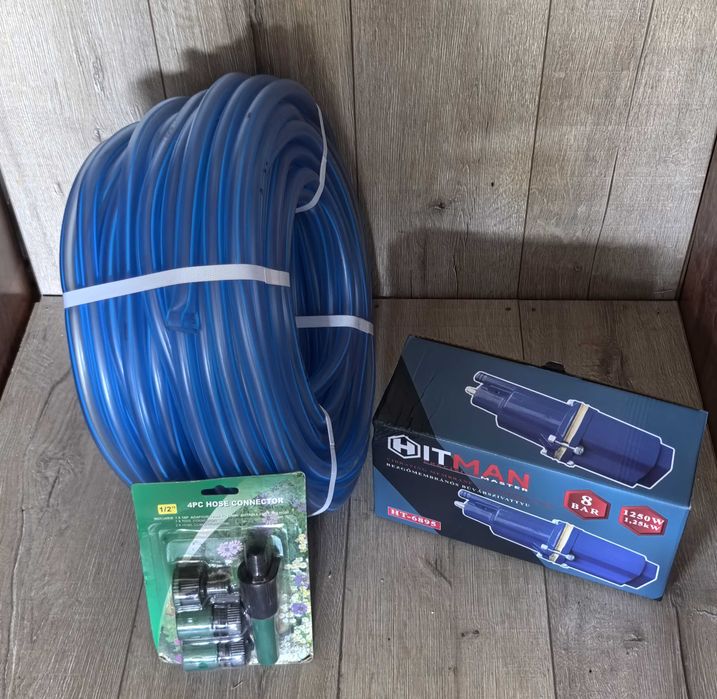 Pachet complet irigatii: pompa submersibila 1250W + furtun + accesorii