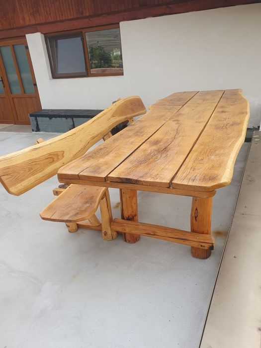 Vând masă cu băncuțe din lemn masiv