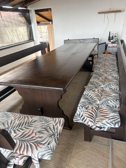 Masa lemn masiv cu 6 scaune