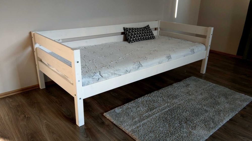Pat canapea din lemn masiv Luis, alb, 90x200 cm