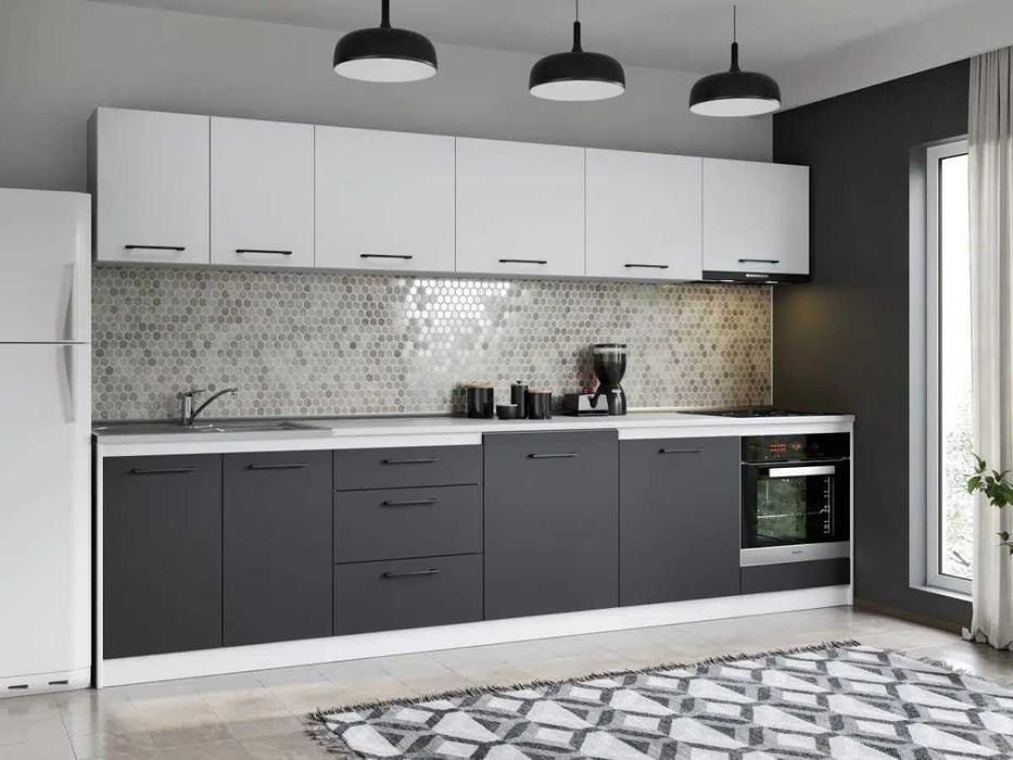 Set Mobila Bucatarie Mina Dual 320 Gri Antracit/Alb C168