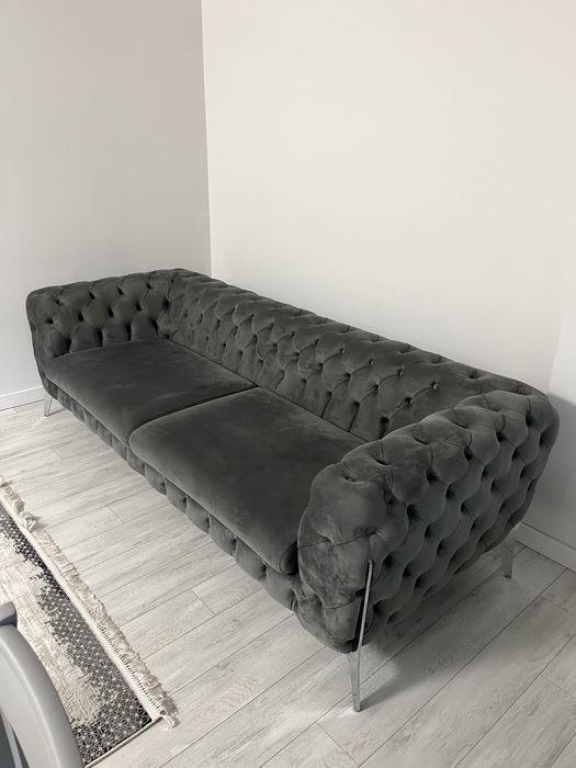 canapea chesterfield din catifea gri