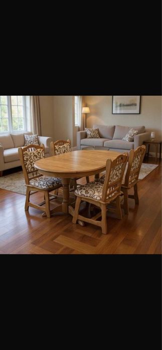 Masa extensibila pt 6 persoane cu scaune tapițate incluse