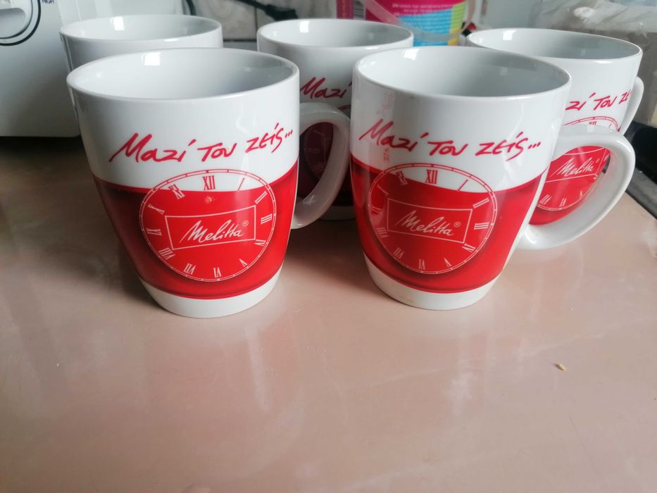 Căni de cafea și pahare de apa