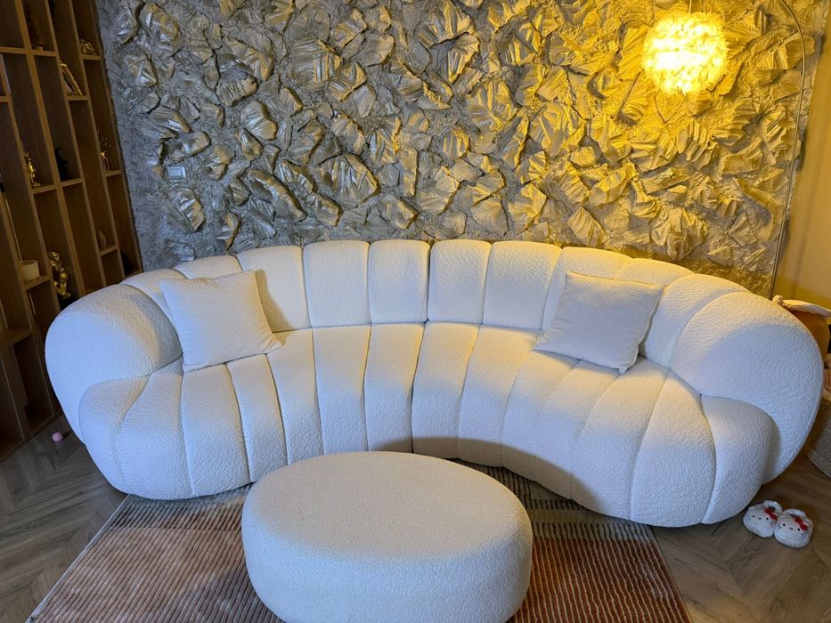 Canapea albă modernă tip boucle.
