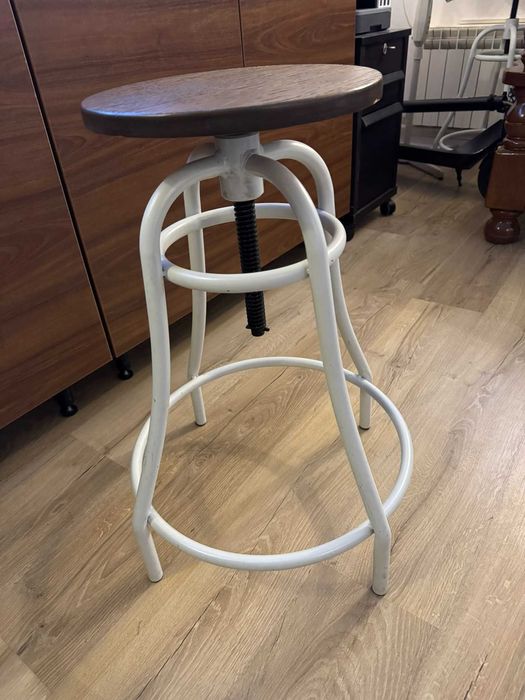 Set 3 scaune de bar moderne, stil scandinav, alb & lemn – stare foarte
