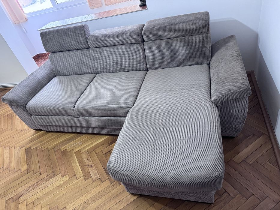 Canapea coltar extensibila gri- lada depozitare