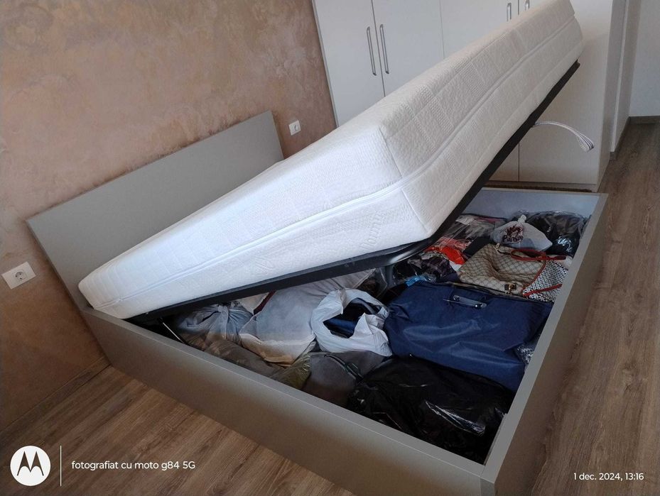 pat 160x200 cu saltea în Dormitor