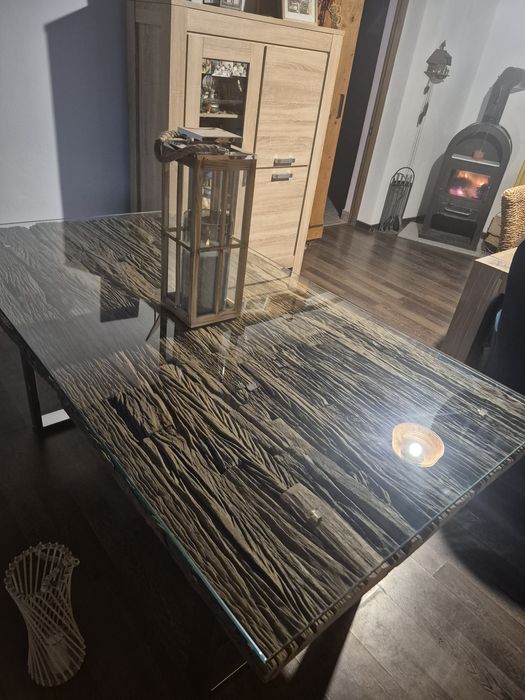 Masa dining, lemn brut si sticla, Barracuda