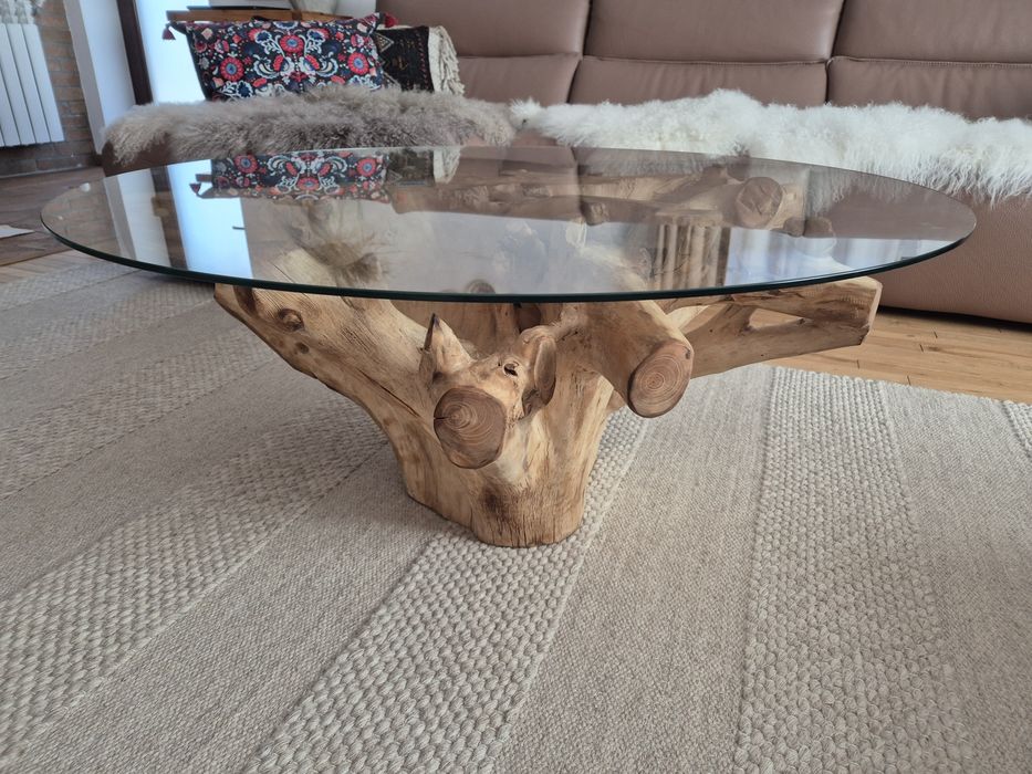 Masa cafea leaving lemn masiv buturuga cioata cu sticla securizata