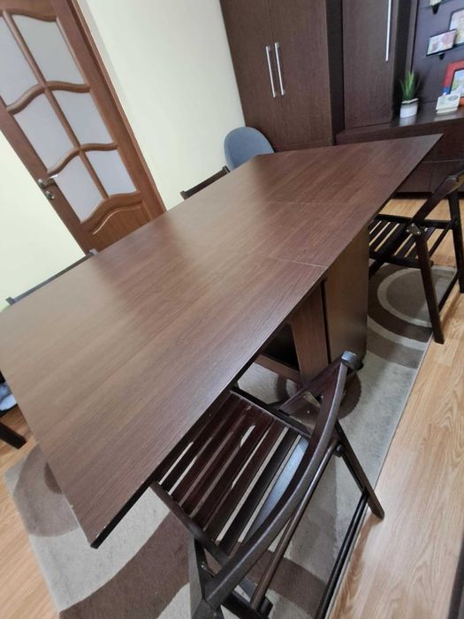 Vând masă rabatabilă cu 4 scaune incluse