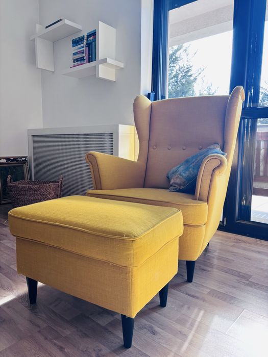 Fotoliu IKEA tip STRANDMON + taburet – galben muștar