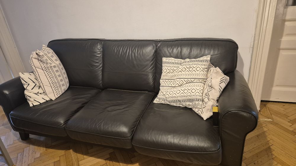 Canapea piele  IKEA 3 locuri maro inchis 2 m  stare excelenta