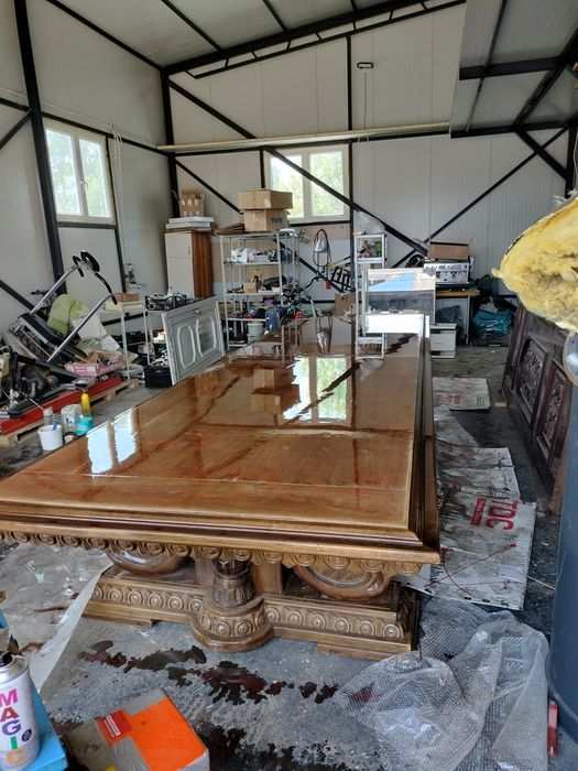 Vând masa și poartă sculptată din lemn masiv.