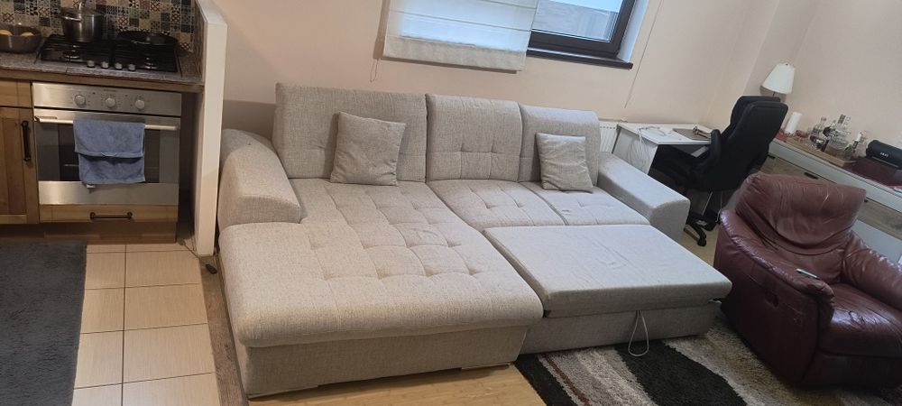 Canapea extensibila  L cu spatiu de depozitare.