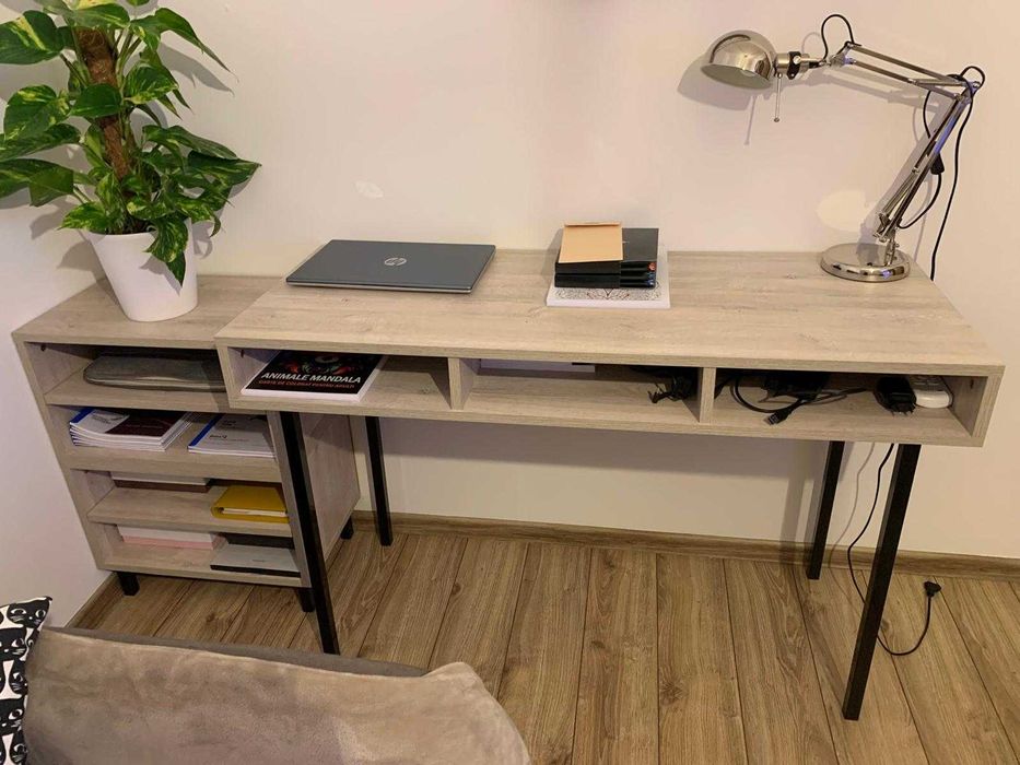 Birou modern cu rafturi, stil industrial, stare foarte bună