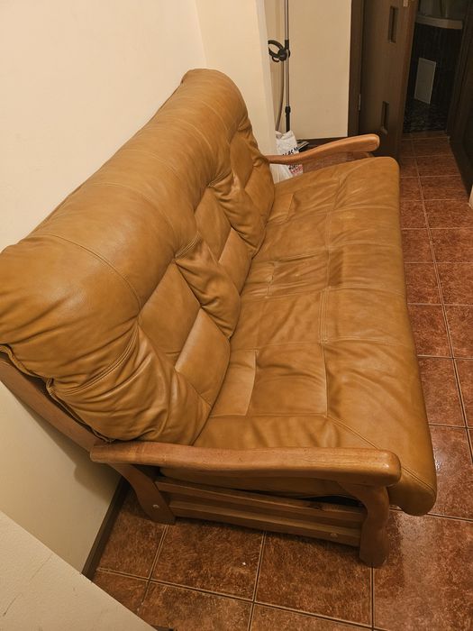 Set canapele lemn masiv, piele naturala