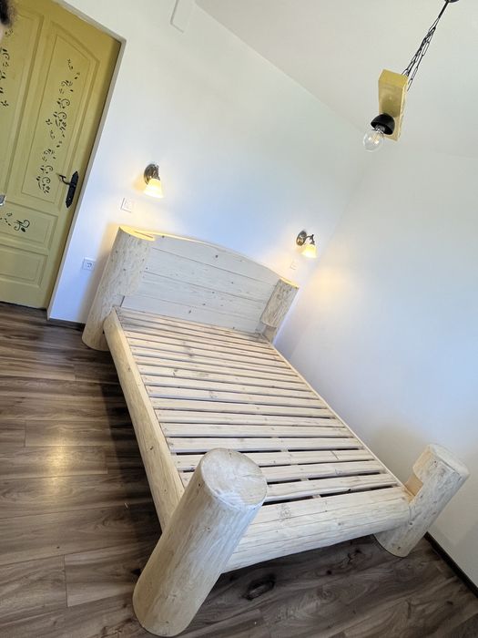 Pat rustic din lemn rotund