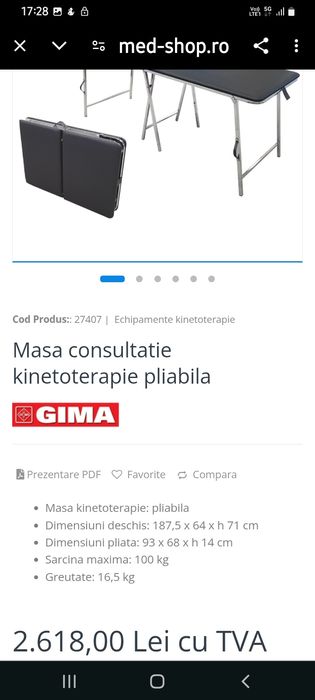 Masa consultație kinetoterapie pliabila noua