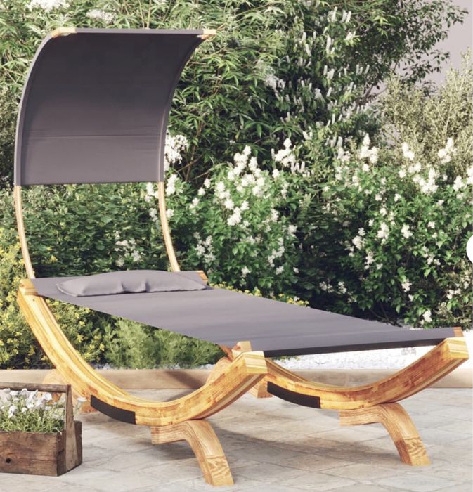 Sezlong pat exterior cu baldachin antracit din lemn masiv VidaXL nou