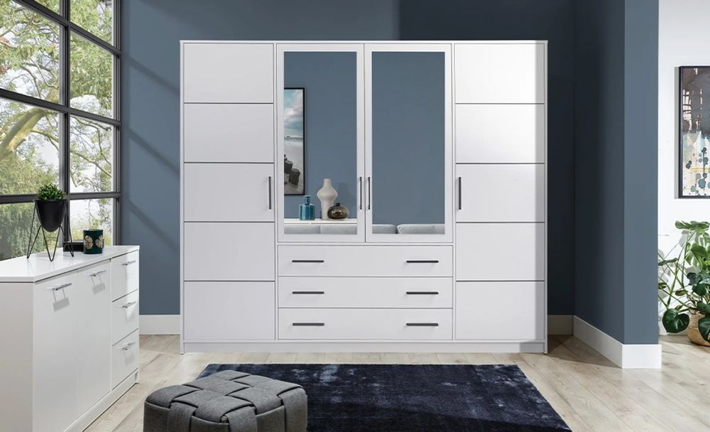Dulap/Șifonier Bali 4 uși alb cu oglindă