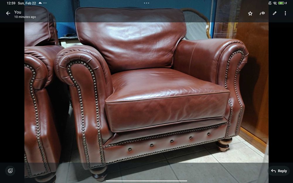 Canapea si fotoliu Chesterfield, piele naturala bison
