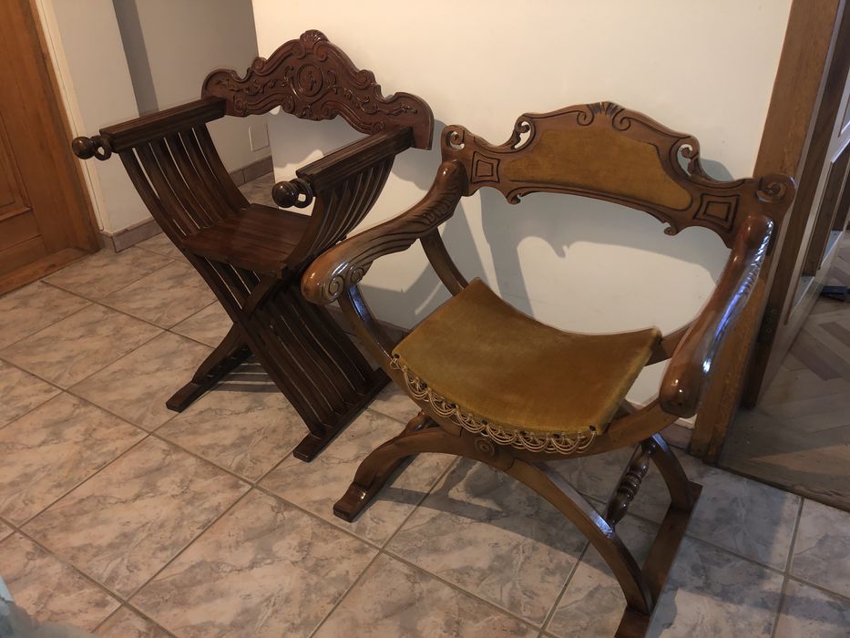 Savonarola / Jilț / Scaun cu brațe din lemn masiv sculptat