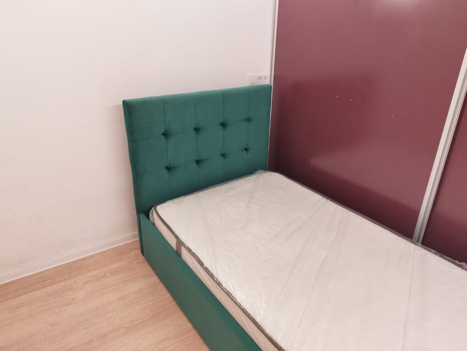 Vând pat tapițat din catifea verde smarald 90/200