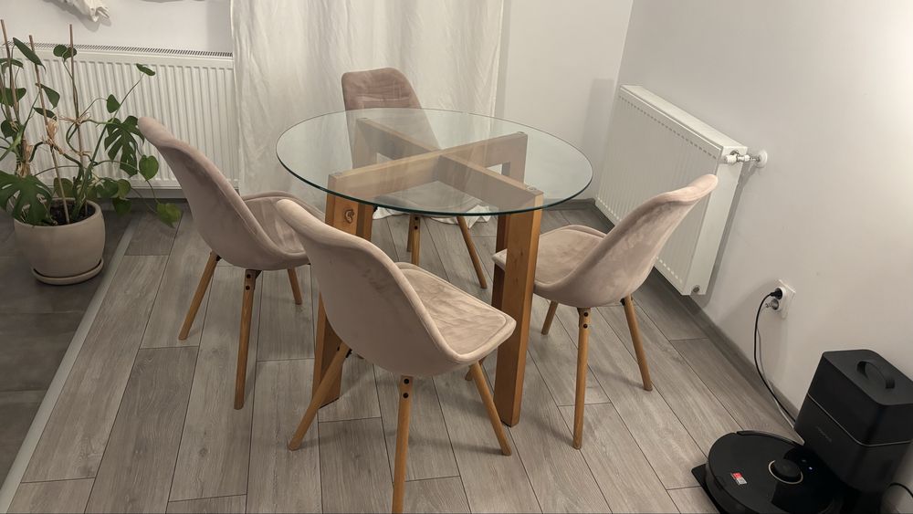 Set Masă rotundă sticla/stejar și 4 Scaune Jysk