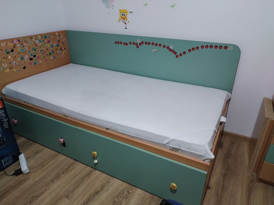 Vând pat cu saltea și sertar aproape nou