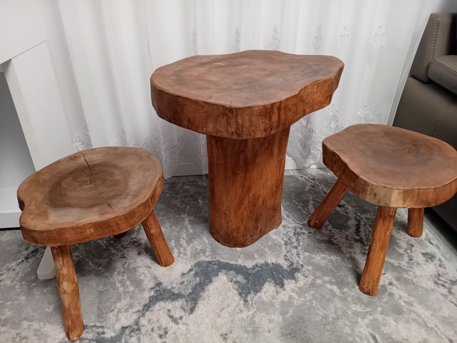 Măsuță si scaunele din lemn de nuc.