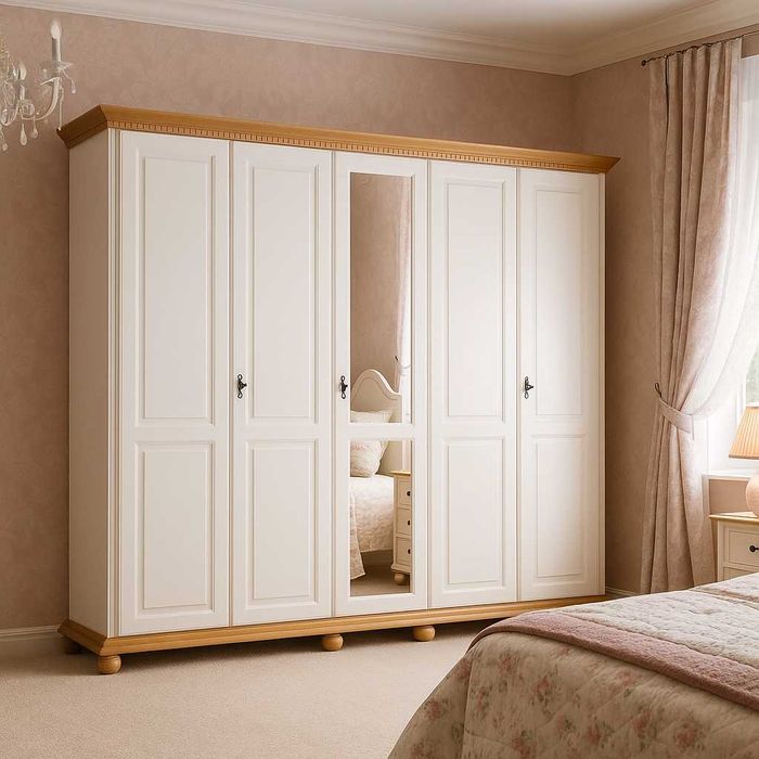 Dulap lemn masiv cu oglinda Mona, suprainaltat, 3 + 3 usi + 2 sertare