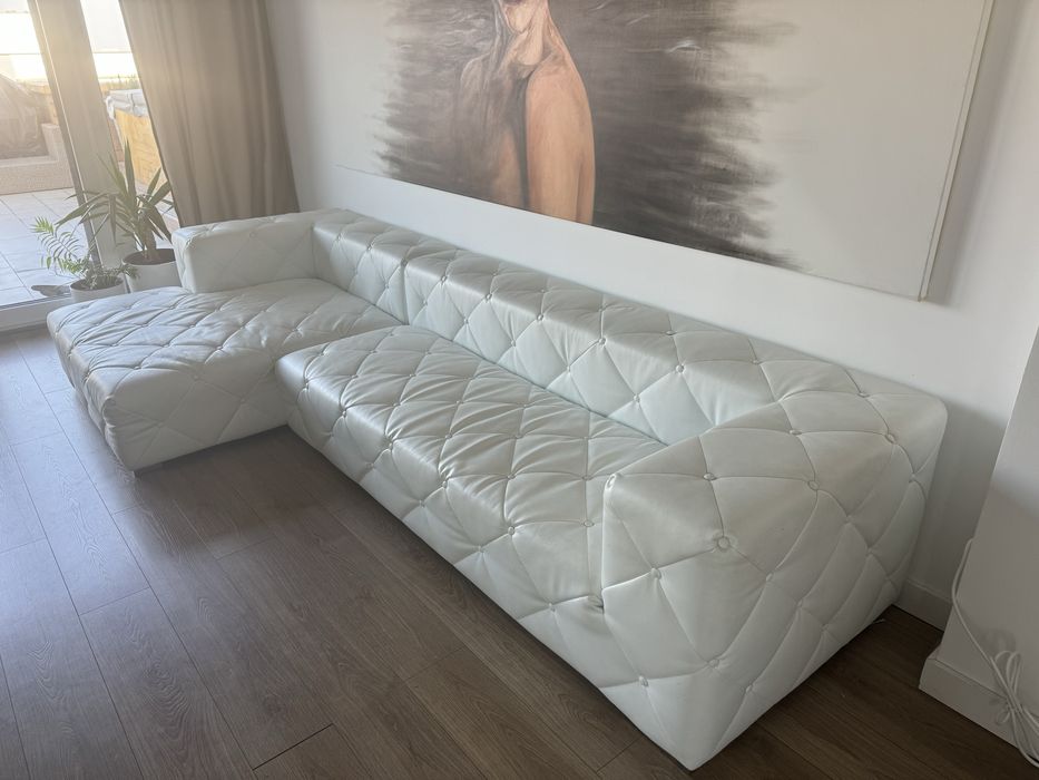 Vand colțar de sufragerie mare, în formă de U, din piele naturală