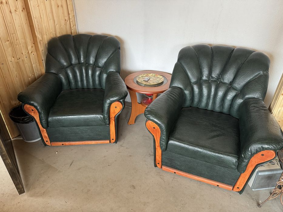 Vand 2 buc. fotoliu lemn masiv si imitatie piele!
