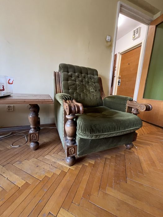 Mobila veche. Set living, canapea extensibila, 2 fotolii , masuta