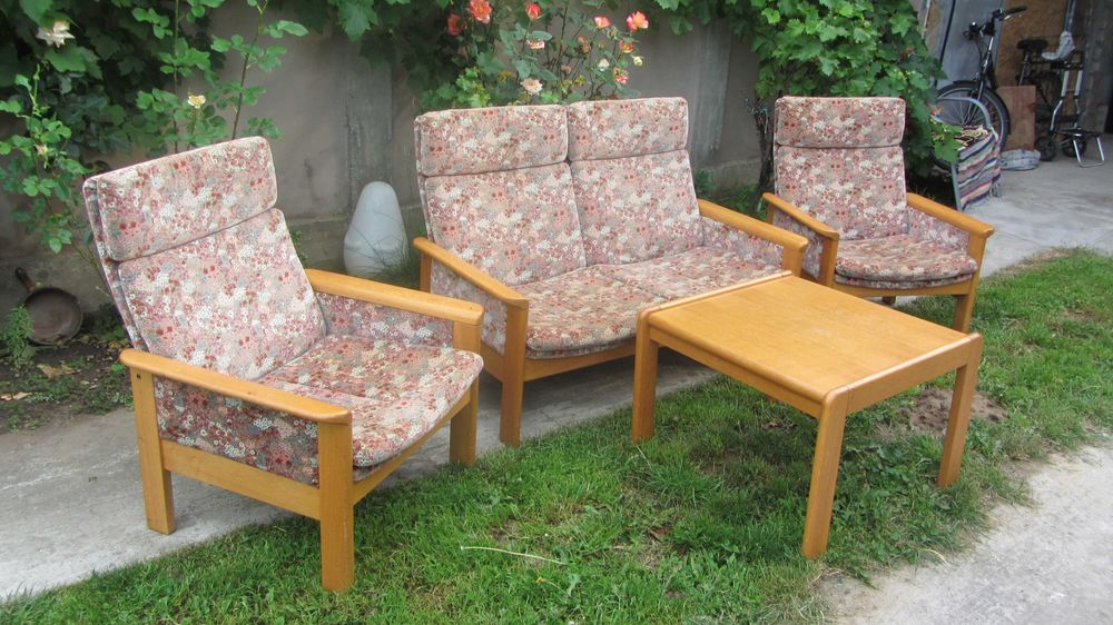 De vanzare set canapea si fotoliu, lemn masiv - reconditionate manual!