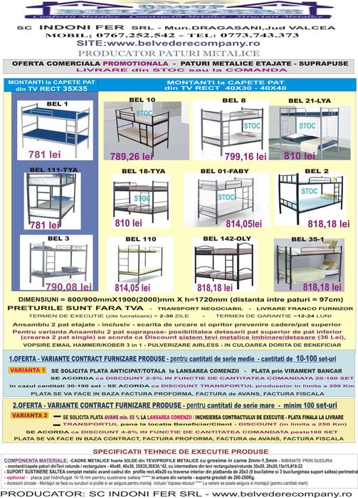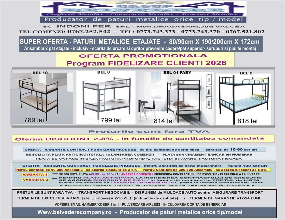 Paturi Metalice Etajate in stoc direct de la Producator- super oferta!